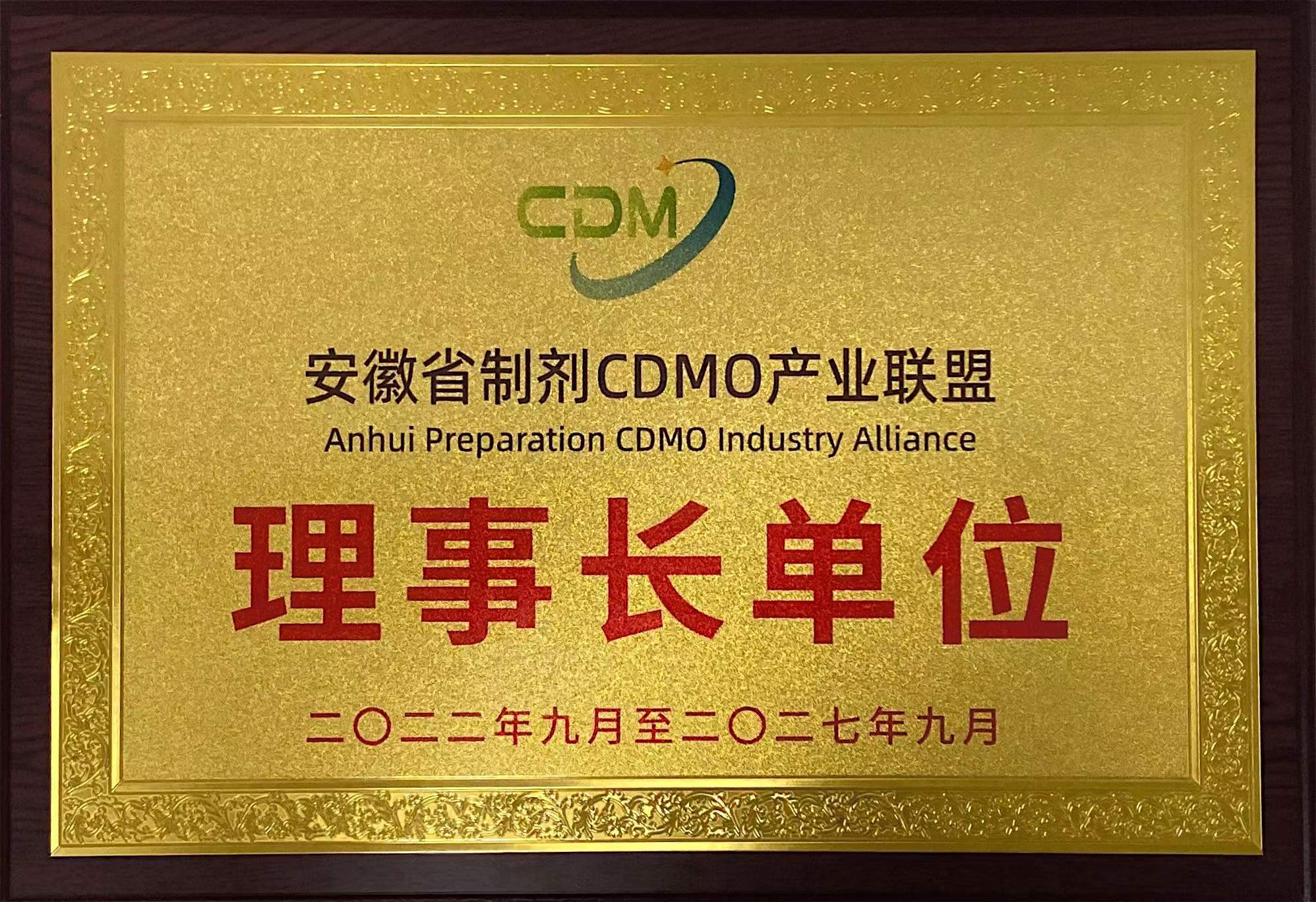 當(dāng)選安徽省制劑CDMO產(chǎn)業(yè)聯(lián)盟理事長單位
