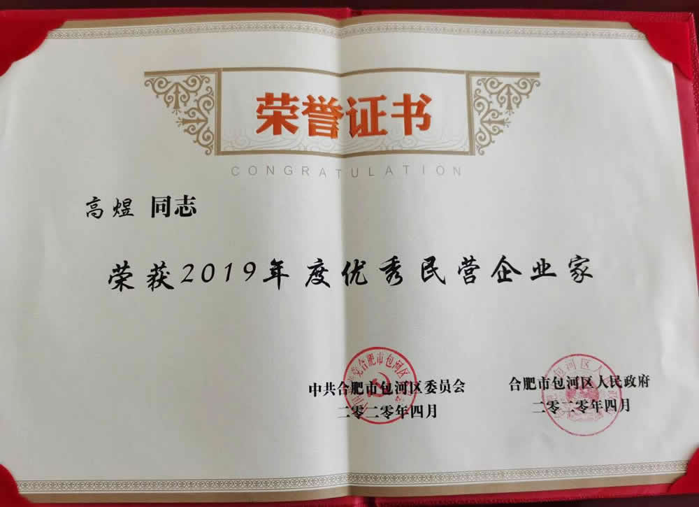 榮獲“2019年度包河區(qū)優(yōu)秀民營(yíng)企業(yè)家”稱(chēng)號(hào)
