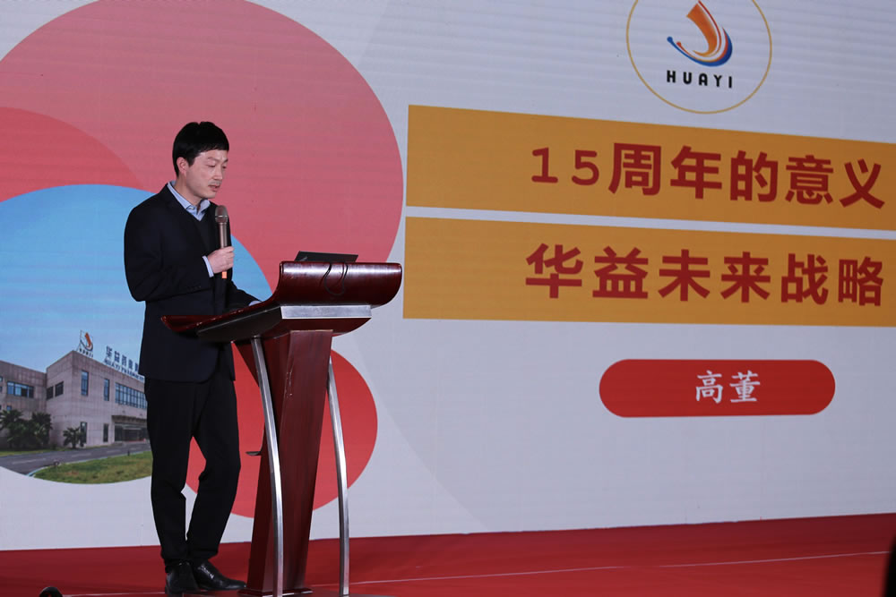 首先,董事長(zhǎng)兼總經(jīng)理高董如數(shù)家珍地講述著華益從成立之初、到今日耀眼的成就,慷慨激昂地介紹未來(lái)發(fā)展戰(zhàn)略。