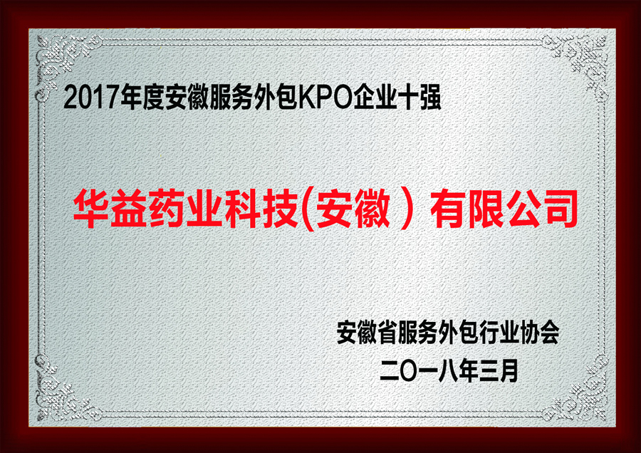 2017年度安徽省服務(wù)外包KPO企業(yè)十強(qiáng)